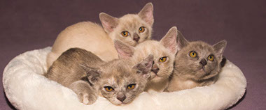 Cinnamon, Fawn, Lilac, and Chocolate Burmese