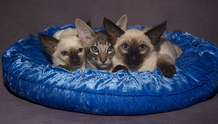 Blue Tortie, Lilac Tortie, and Blue Burmese