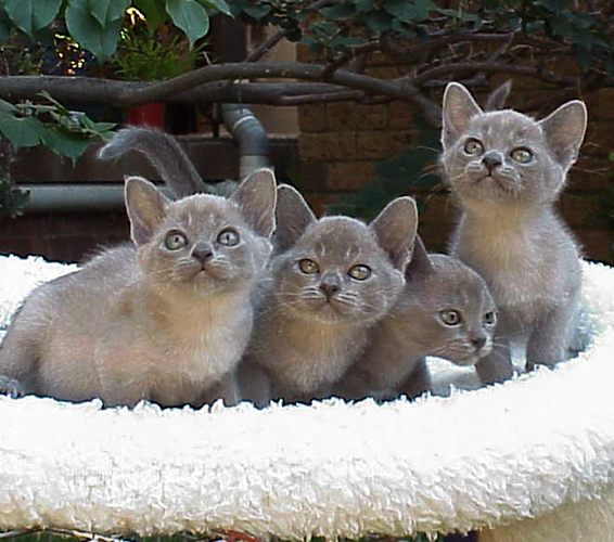 Blue Tortie, Lilac Tortie, and Blue Burmese