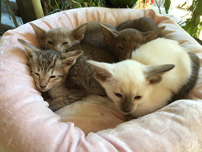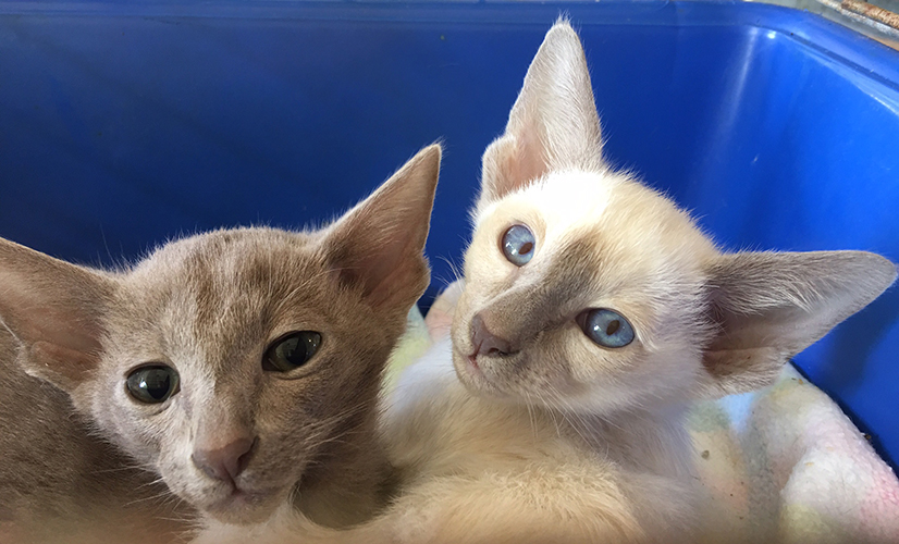 Tabby Oriental and Chocolate Point Siamese