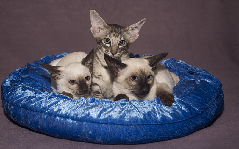 Seal Point, Chocolate Point Siamese and Chocolate Silver Tabby Oriental